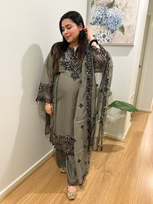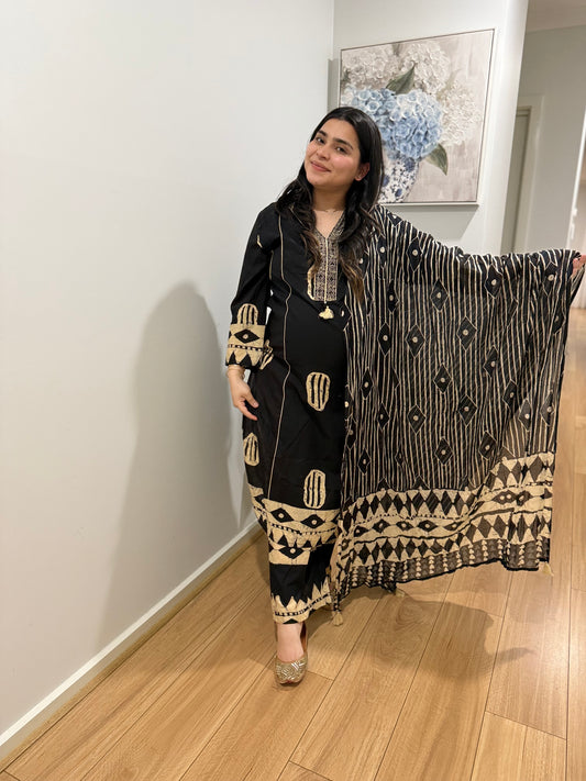 Cotton Printed Black Suit