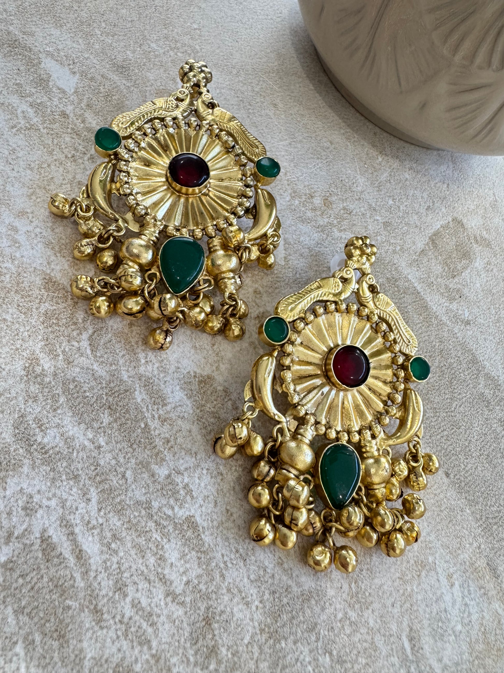 Brass made- lightweight- ghunghroo earrings in gold polishing with monalisa stones in premium and statement finishing.