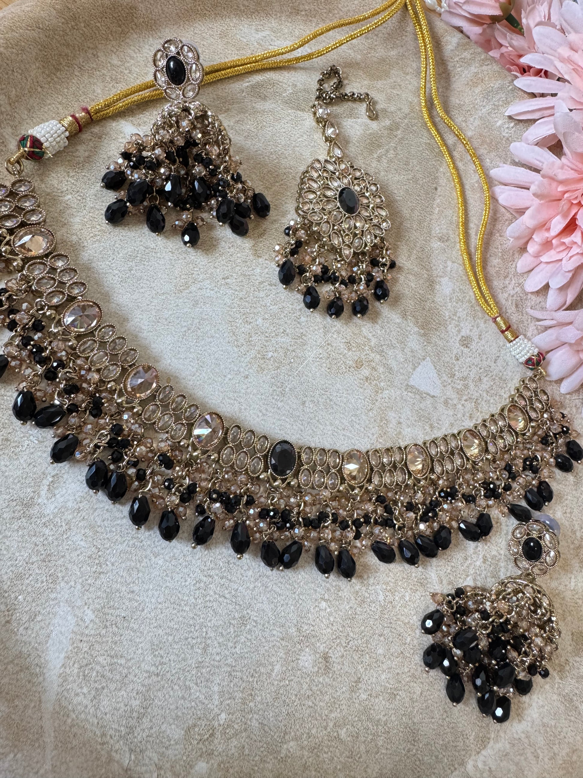 Premium quality polki choker/necklace with earrings (jhumka) and tikka