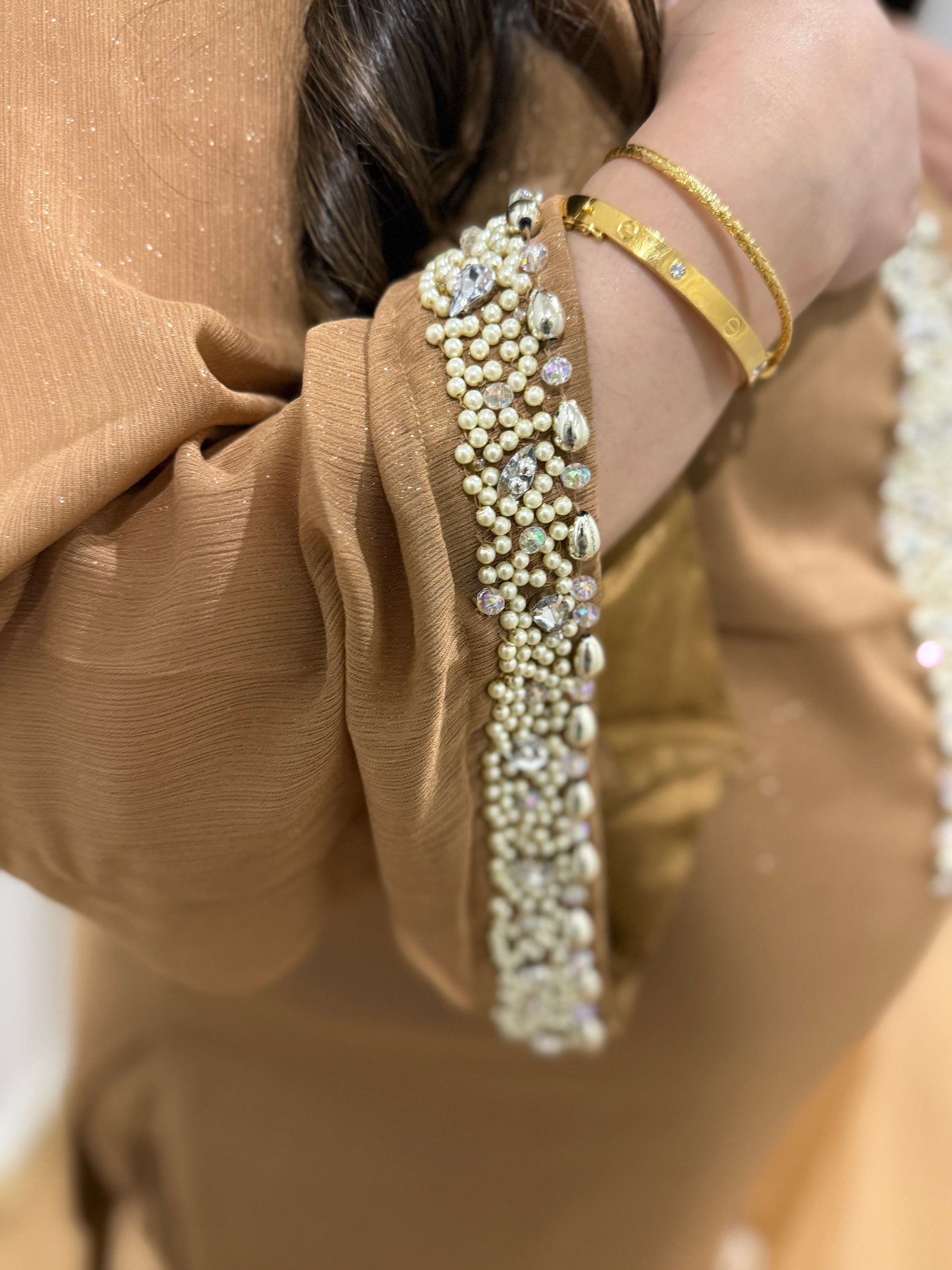 All handwork on the suit with sequins, cutdana and pearl work