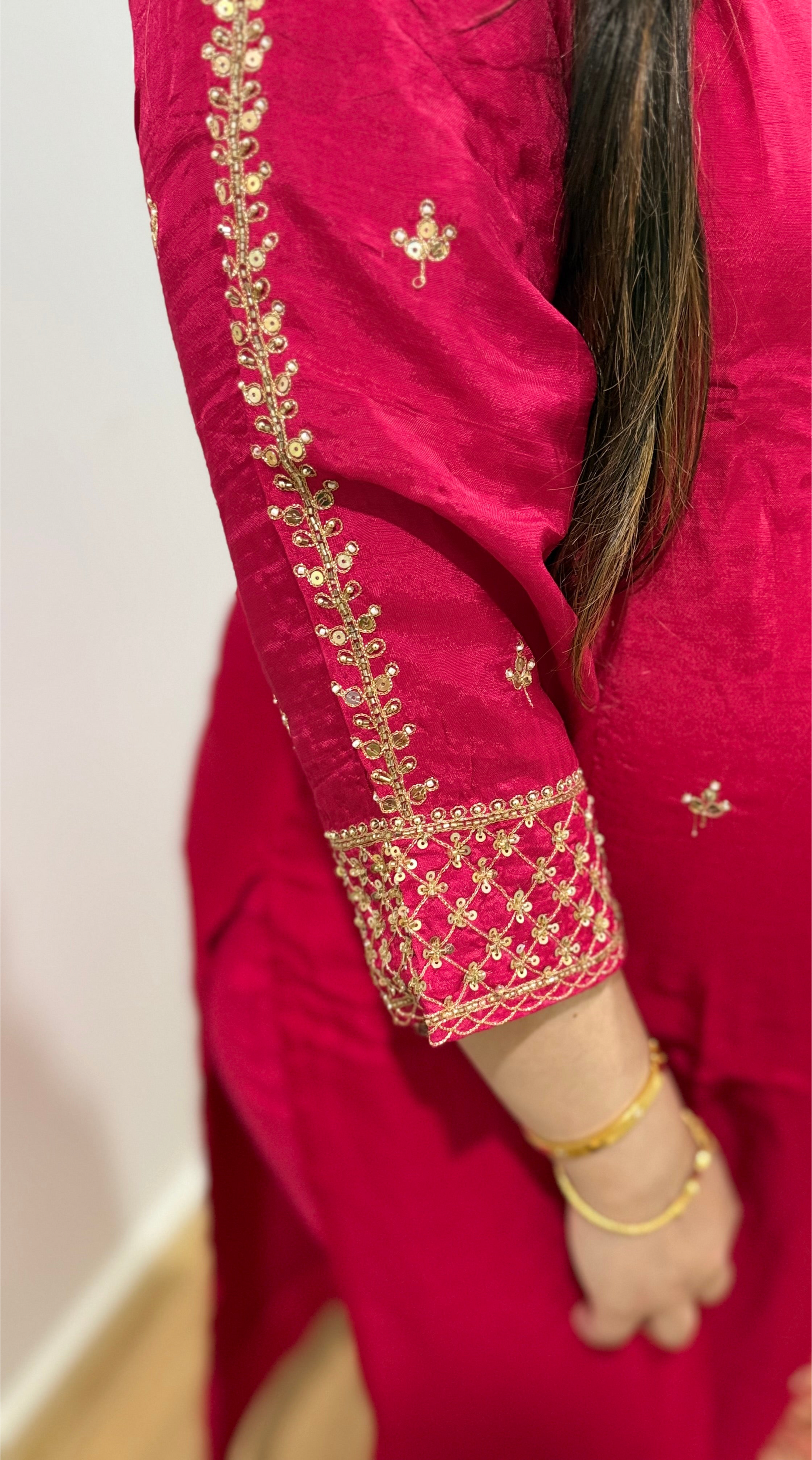 All handwork on the suit with zari and sequin work