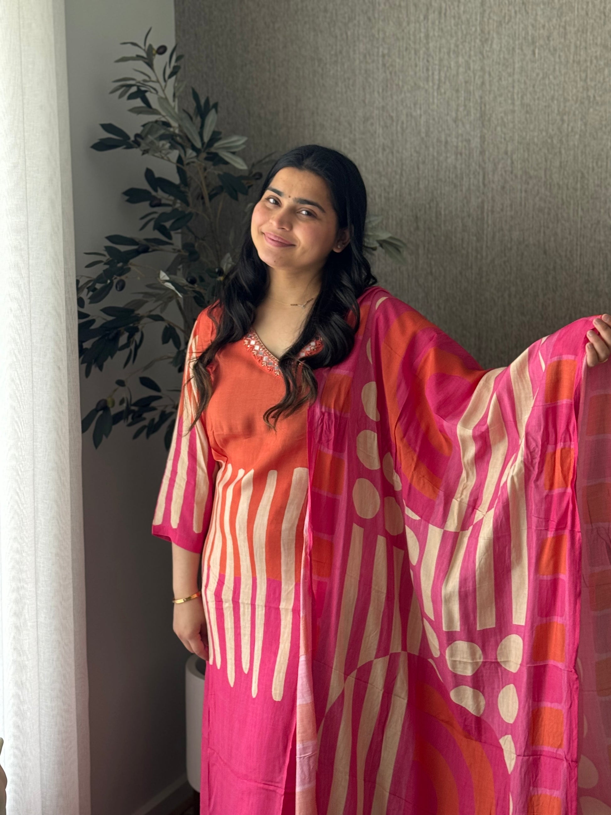 Premium quality muslin straight suit with digital printing. Muslin dupatta and straight pants