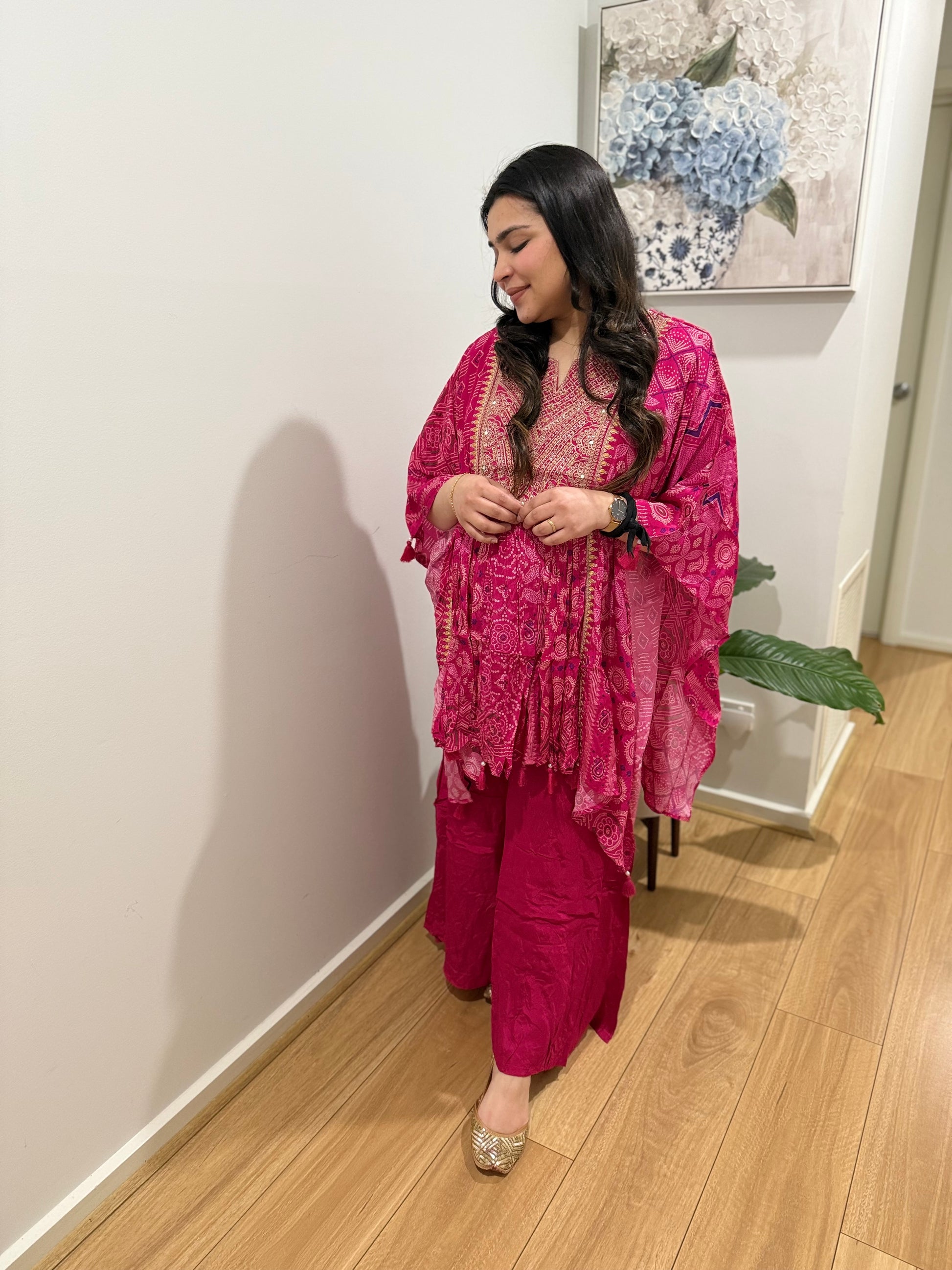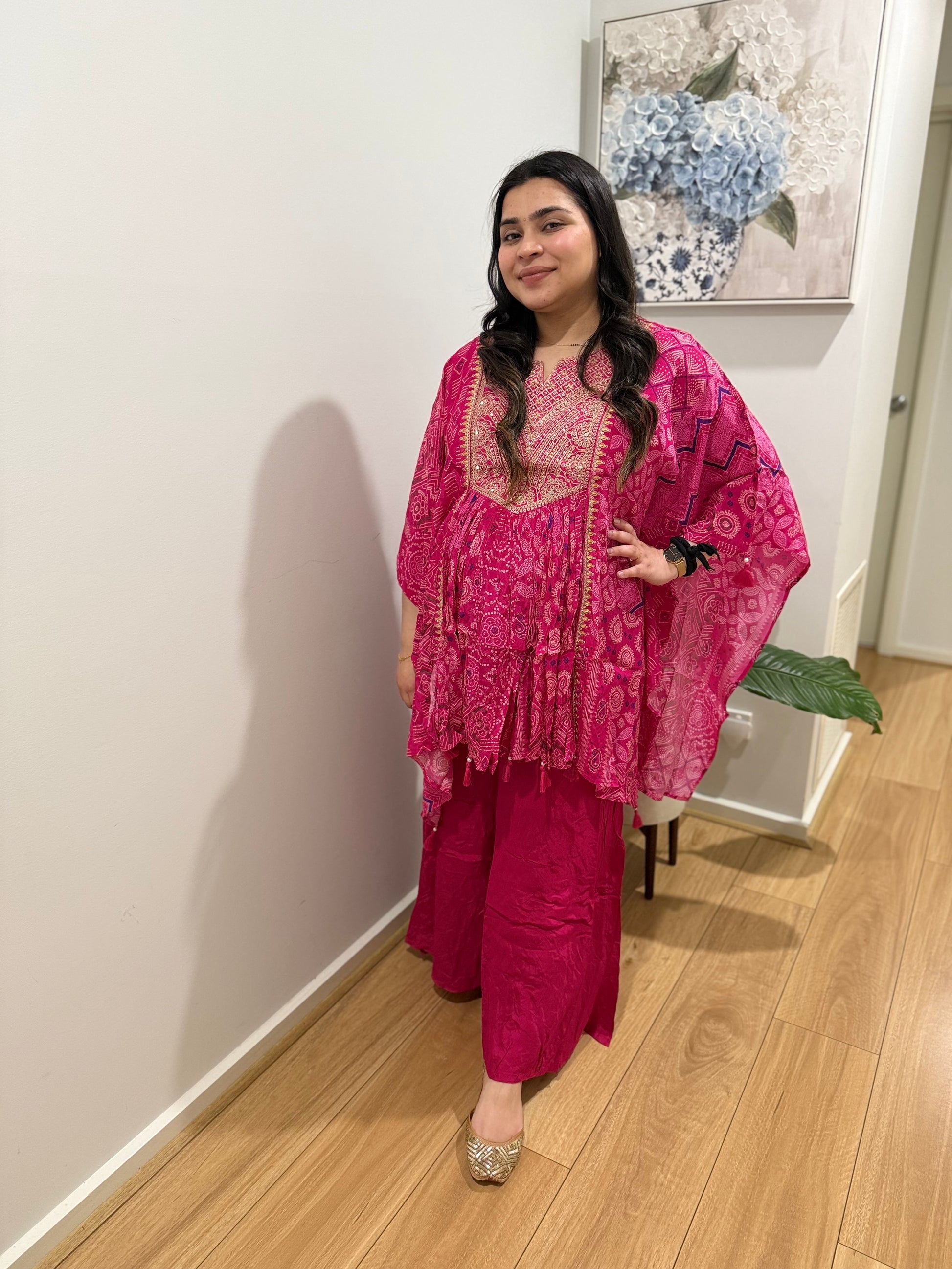 Crepe coord with attached top as lining inside in kaftan style and flare pants