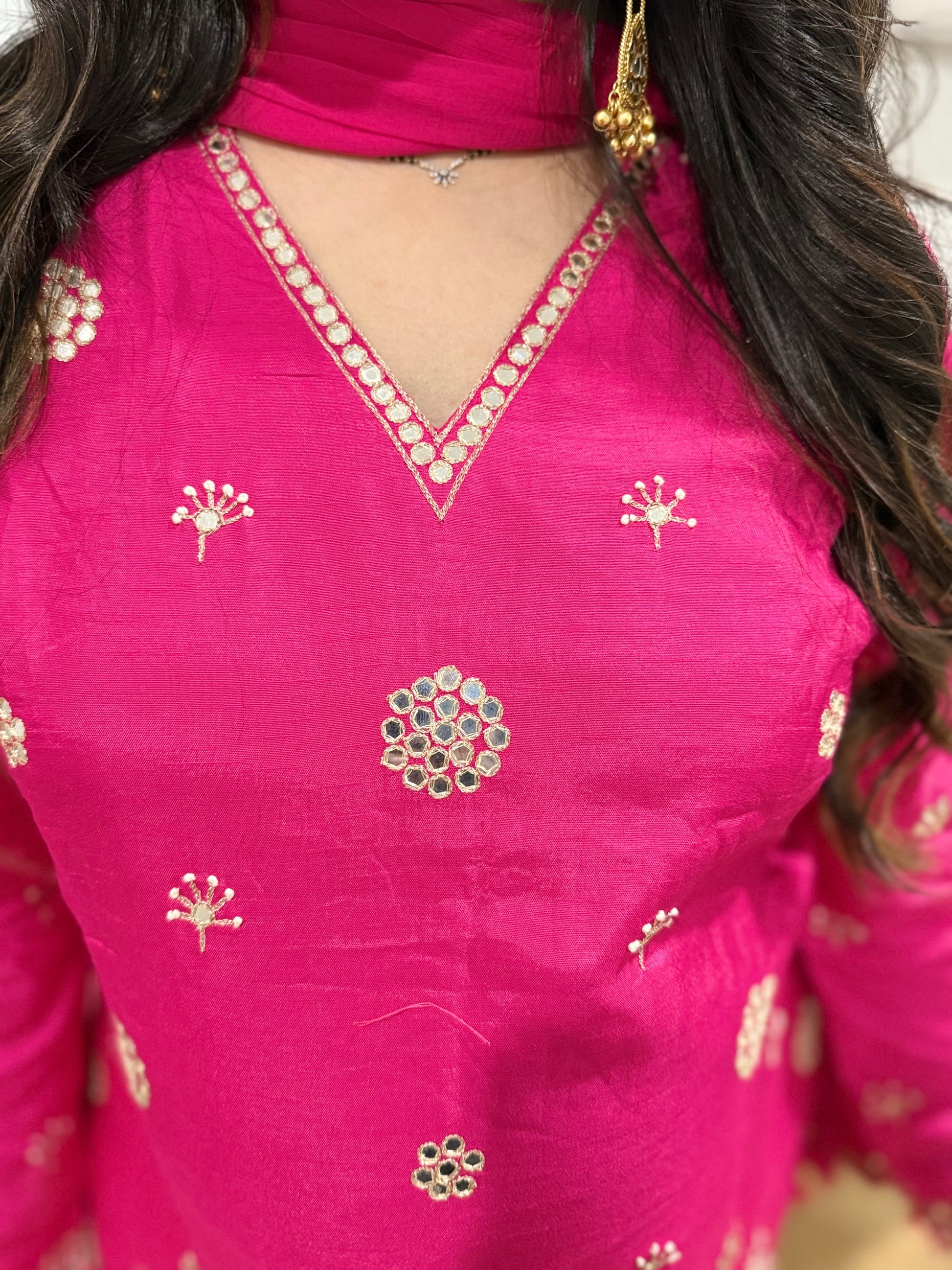 Premium quality silk short top with mirror work and chinnon plazzo